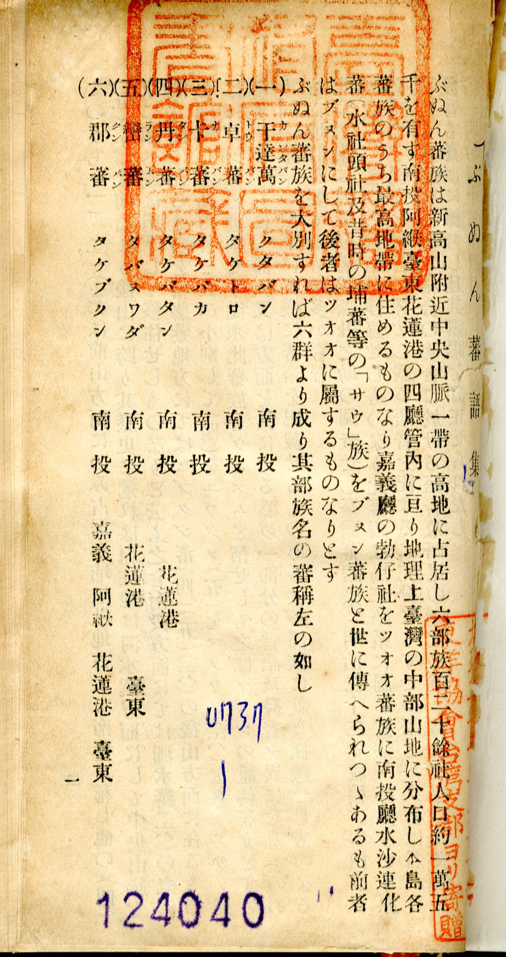 布農族舊籍標音:ブヌン(《ぶぬん蕃語集》族語拼音:Bunun
