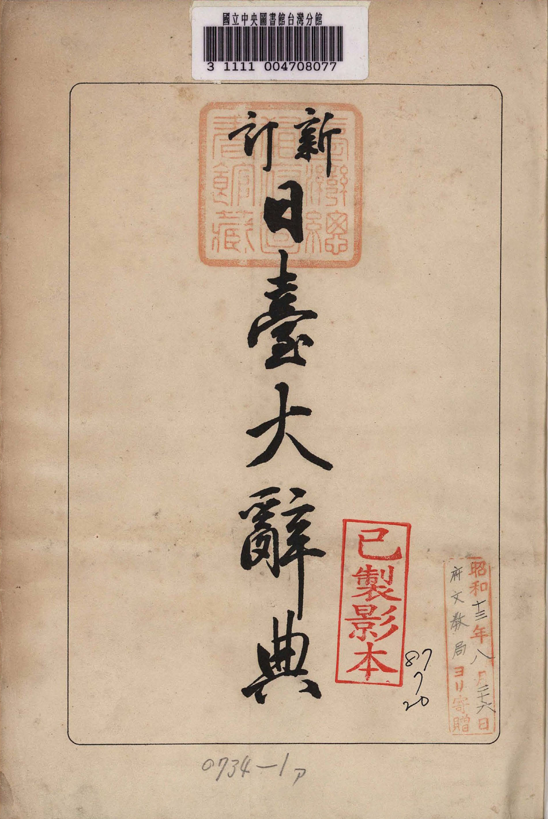 小川尚義,《日臺大辭典》(臺北:臺灣總督府民政部總務局學務課,1907年3月)