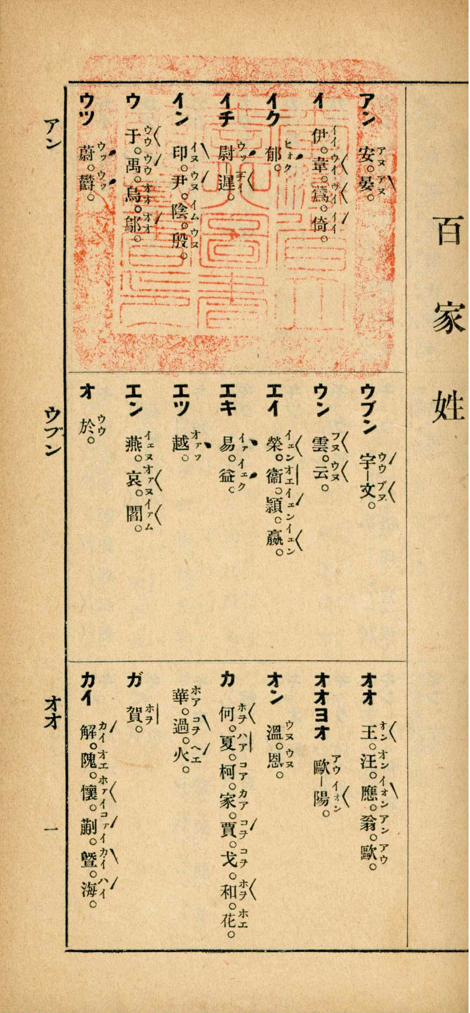 《日臺小辭典》特別收錄百家姓的日臺讀音對照