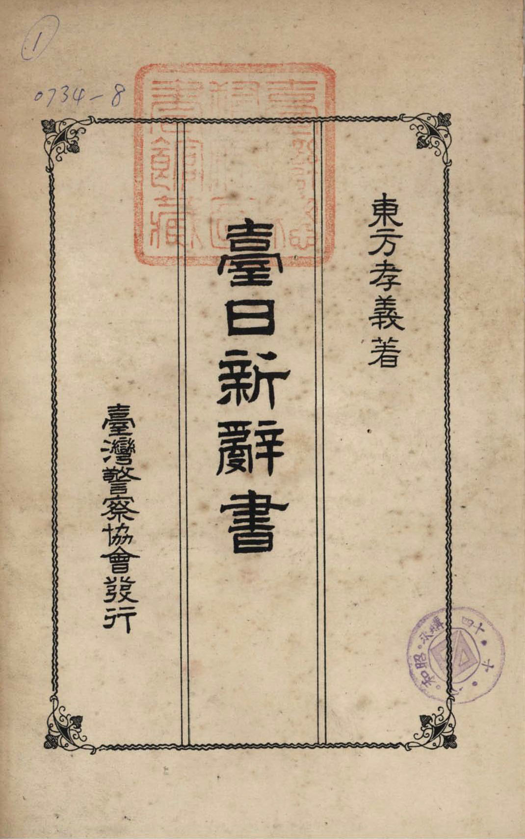 由東方孝義編,1931年7月臺灣警察協會發行。東方孝義曾任法院通譯、警察官及司獄官練習所語學主任教官等職,有感於辭典不足,利用公餘之暇編成此書。本書分為「緒言」和「辭書」兩部分,前者簡介臺灣語言分布情形,後者依臺語詞彙發音對譯日語。